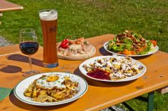 Öffnungszeiten Sommer 9 bis 17.00 Uhr durchgehend warme KücheFreitag Ruhetag